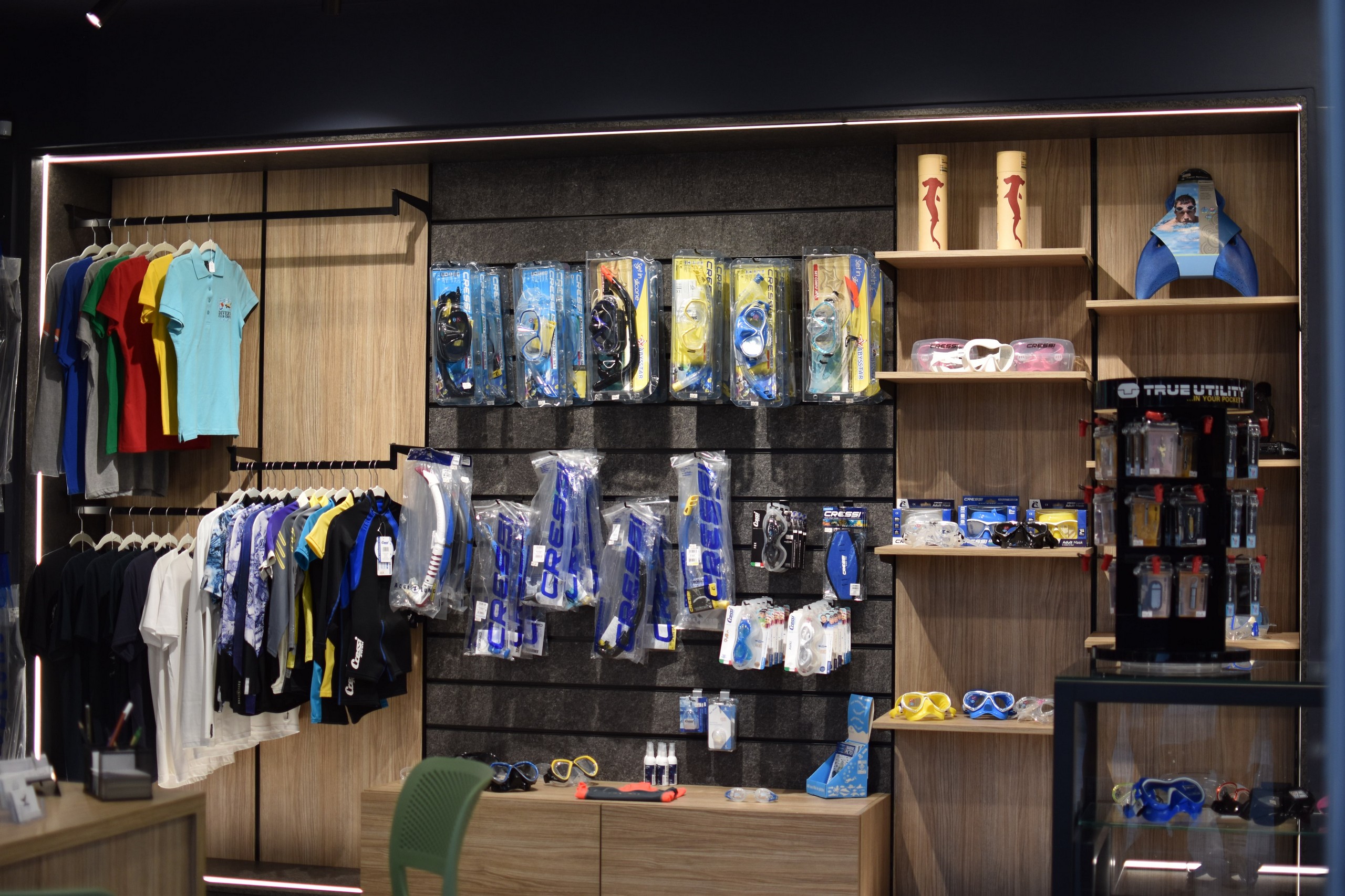 In unserem neuen Tauchshop gibt es eine große Auswahl von Schwimmbrillen, Masken, Schnorchel und Flossen für alle Altersstufen, außerdem Lampen, Messer, T-Shirts, “Rushguards” (Schwimmhemden), reichlich Zubehör zum Tauchen & Schnorcheln, sowie “Meeres -” Geschenke für Freunde und die Familie.